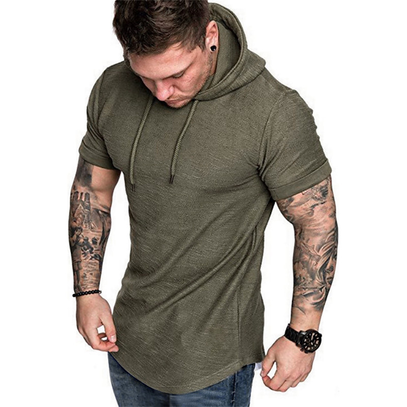 Men's T Shirt Short Sleeve Hooded Spring Summer Plain Simple Muscle Black White Army Green Top Tee for Men