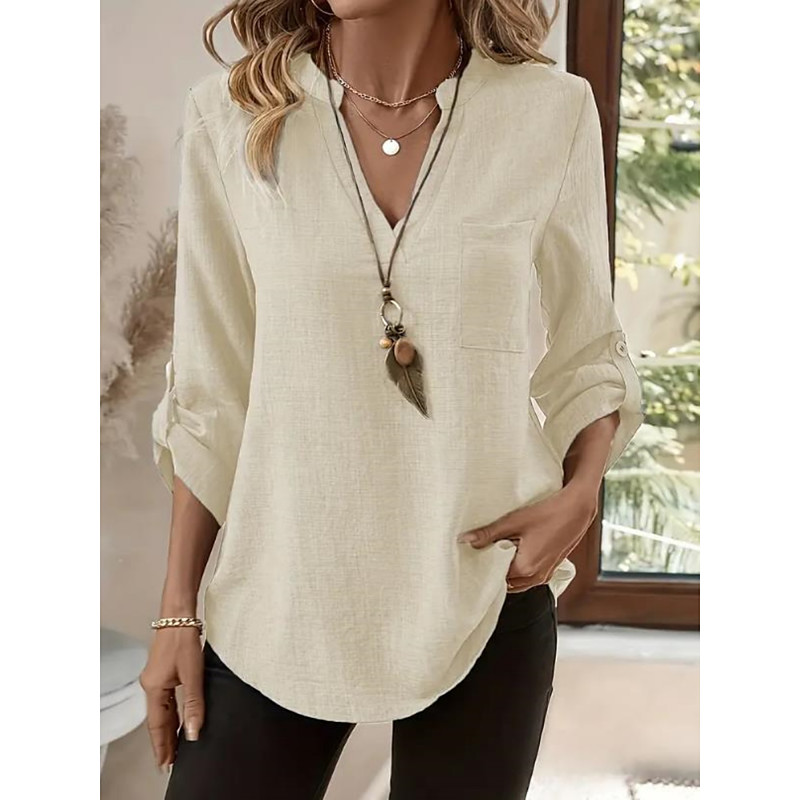 Women's Shirts Solid Color Stylish Casual Long Sleeve V Neck Regular Tops Daily Buttons Blue Purple Green Khaki Beige Summer Spring