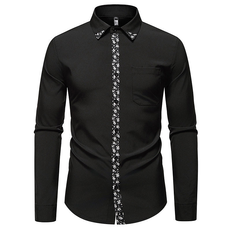 Men's Shirt Dress Shirt Button Up Shirt Floral Wedding Party Black White Long Sleeve Lapel Spring Fall Clothing Apparel Patchwork