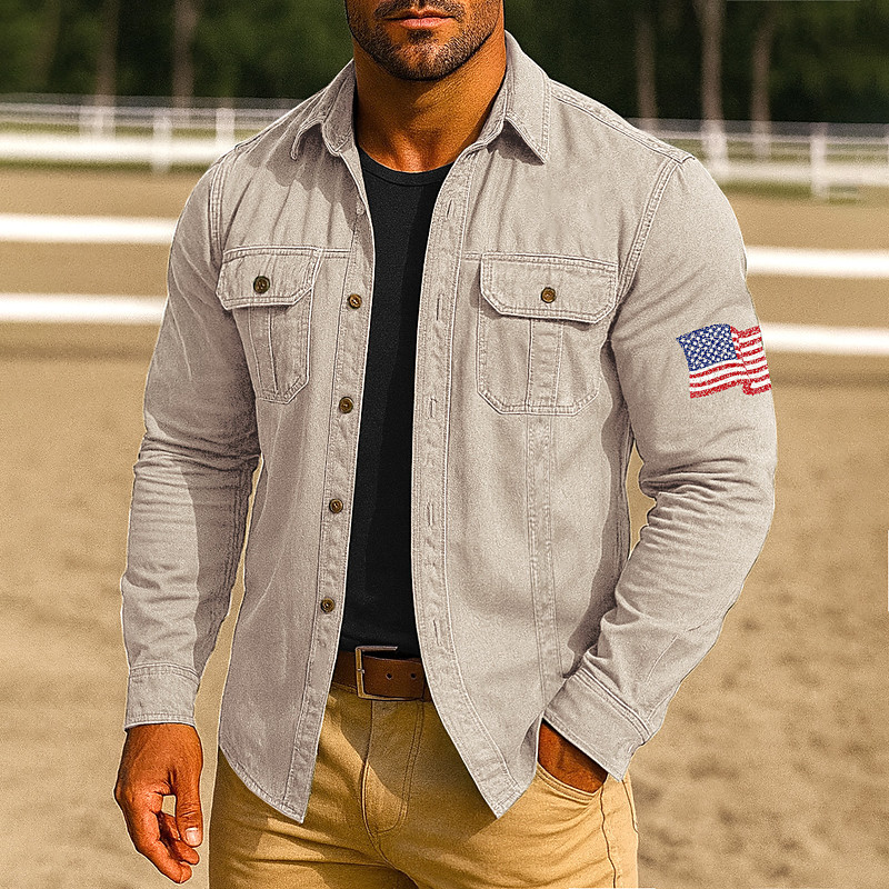 Men's American US Flag Work Shirt Western Shirt Cargo Shirt Long Sleeve Casual Tactical Sports Outdoor WorkWear Spring Fall Turndown Front Two Pockets Button Up Shirts Black Army Green Red Blue Orange
