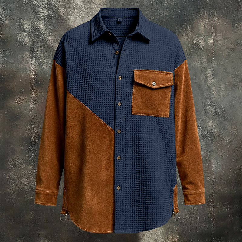 Men's Shirt Waffle Shirt Casual Shirt Band Collar Shirt Button Up Shirt Cargo Shirt Black Navy Blue Green khaki Long Sleeve Geometric Plain Mandarin Collar Casual Daily Color Block Clothing Apparel
