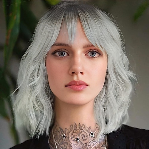Parrucca corta bionda sfumata, parrucche biondo cenere lisce lunghe fino alle spalle per donna, parrucca sintetica in fibra resistente al calore con riga centrale, per uso quotidiano