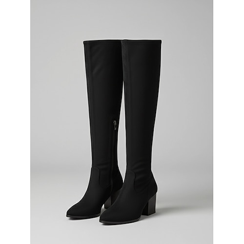 stivali neri alti fino al ginocchio da donna con cerniera laterale - calzature alla moda casual urbane chic da indossare tutti i giorni