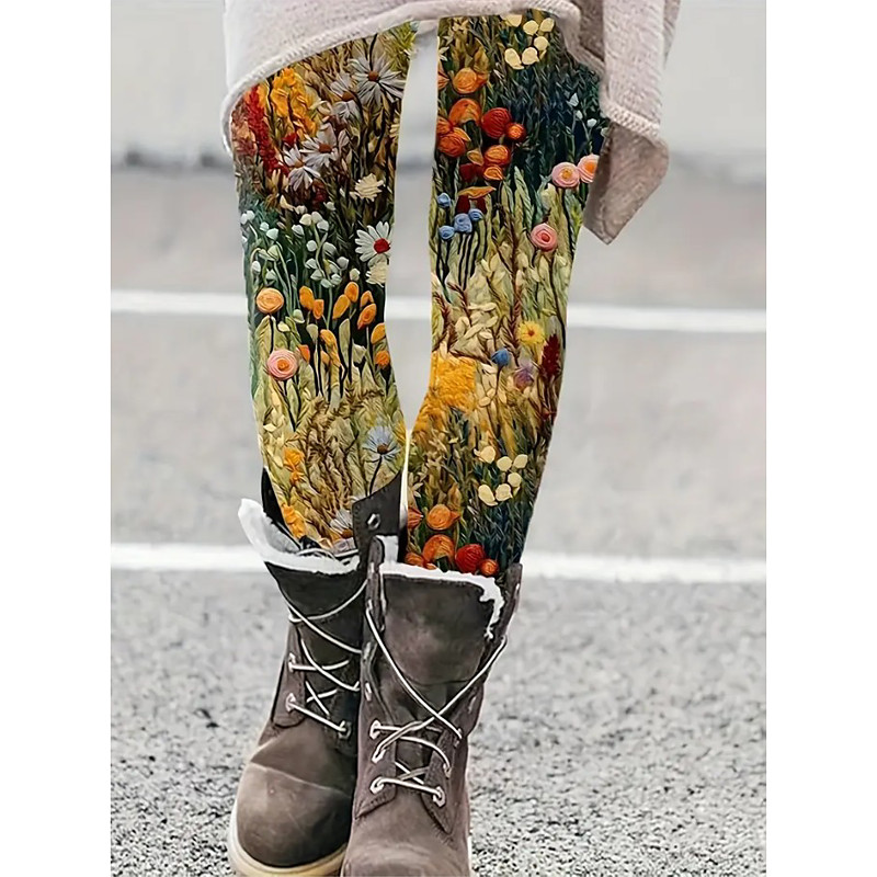 Women's Leggings Vacation Vintage Fashion Full Length High Waist Floral Graphic Leaf Printing Thermal Warm Soft Breathable Stretchy Vacation Street Earth Yellow Dark Purple Green Grey Spring Fall