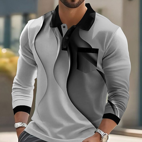 Per uomo Geometrico Polo Manica Lunga Magliette polo Bavero Casual Business Casual Athleisure Abbigliamento quotidiano Tasca Stampa 3D Bottoni Primavera Autunno azzurro cielo Nero Bianco
