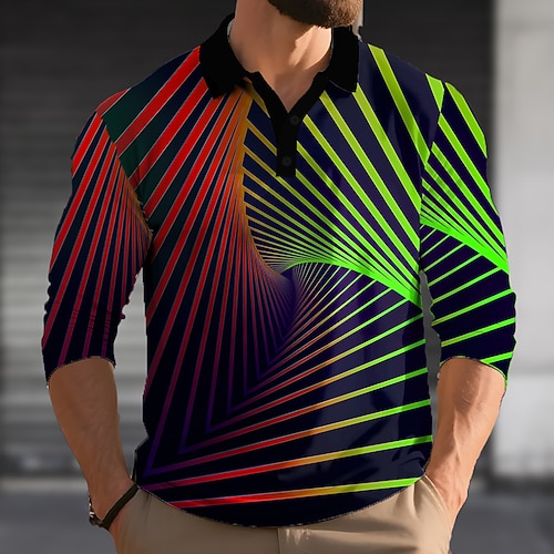 Per uomo Geometrico Linea Polo Manica Lunga Magliette polo Bavero Business Casual Athleisure Abbigliamento quotidiano Tasca Stampa 3D Bottoni Primavera Autunno azzurro cielo Blu Verde