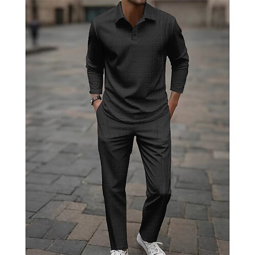 Per uomo Maglia da golf Polo da Golf Lavoro Casuale Bavero Manica Lunga Essenziale Moderno Semplice Jacquard Bottoni Primavera Autunno Vestibilità regolare Nero Bianco Azzurro cielo Cachi Verde