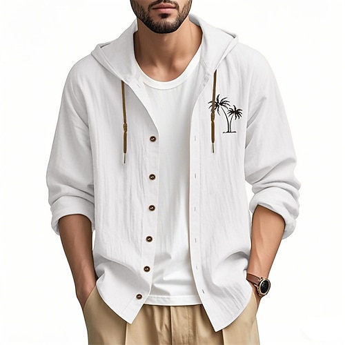 Per uomo Camicia Camicia di lino Camicia casual Camicia con Bottoni Camicia di cotone Albero di Cocco Vacanza Camicia hawaiana Nero Bianco Azzurro cielo Cachi Manica Lunga Con Cappuccio Primavera