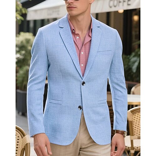 Per uomo Giacca blazer Blazer di Lino Colletto ad incastro Moda Casual Tinta unita Azzurro cielo Grigio scuro Verde militare Vestibilità su misura Monopetto Due Bottoni