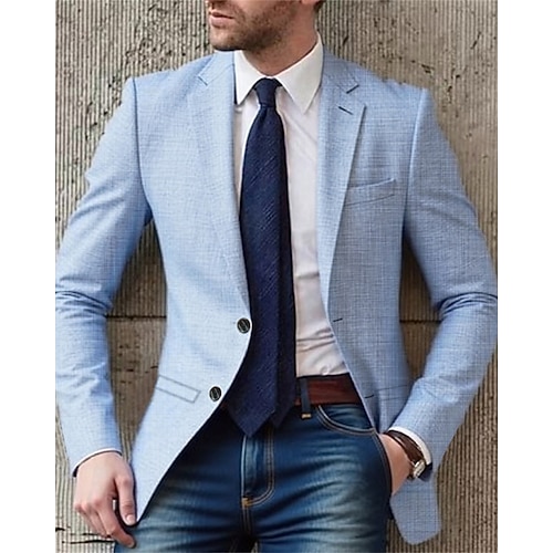 Per uomo Blazer Affari Cocktail party Ricevimento di matrimonio Moda Casual Primavera Autunno Poliestere Semplice Tasca Bottoni Confortevole Monopetto Giacca Azzurro cielo Caffè
