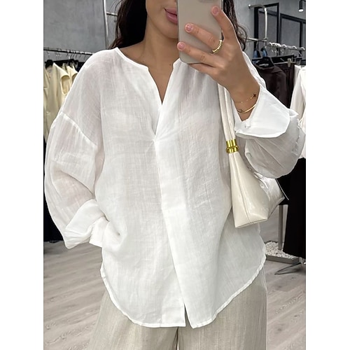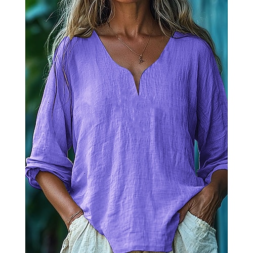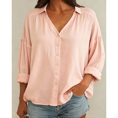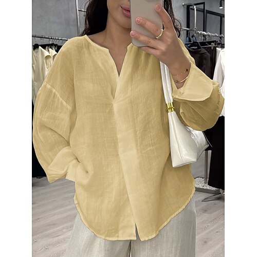 Per donna Blusa Semplice Casual Manica Lunga Scollo a V Top Regolari Quotidiano Ferie Uscire Giallo Rosa Azzurro cielo Viola Beige Estate Primavera