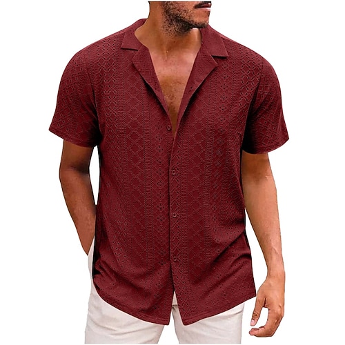Per uomo Camicia Camicia Estiva Camicia casual Camicia da Spiaggia Camicia con Bottoni Vino Azzurro cielo Verde scuro Viola Verde Manica Corta Tinta unica Bavero Quotidiano Vacanza Abbigliamento Moda