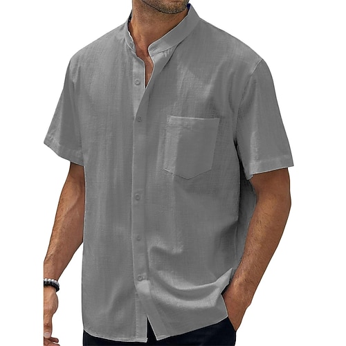 Per uomo Camicia Camicia di lino Camicia Estiva Abbigliamento da spiaggia Camicia con Bottoni Tinta unica Casuale Vacanza Nero Bianco Blu marino Azzurro cielo Manica Corta Colletto alla coreana