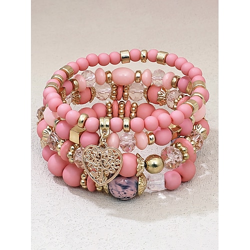 Set di braccialetti in acrilico e lega in stile boho da donna: vari colori, ciondolo a forma di cuore, perfetti per San Valentino e per l'uso quotidiano