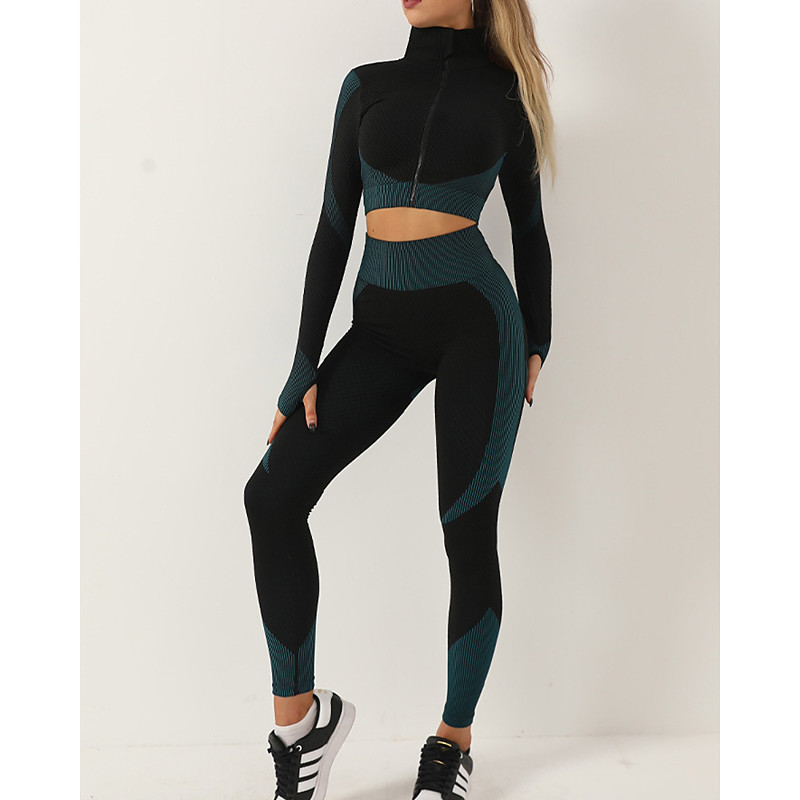 Women's 2 Pieces Yoga Sweatsuit Lounge Outfits Patchwork Color Block Clothing Suit Fall ArmyGreen Black Gym Workout High Waist Quick Dry Stretchy Breathable Long Sleeve Sport Activewear Slim