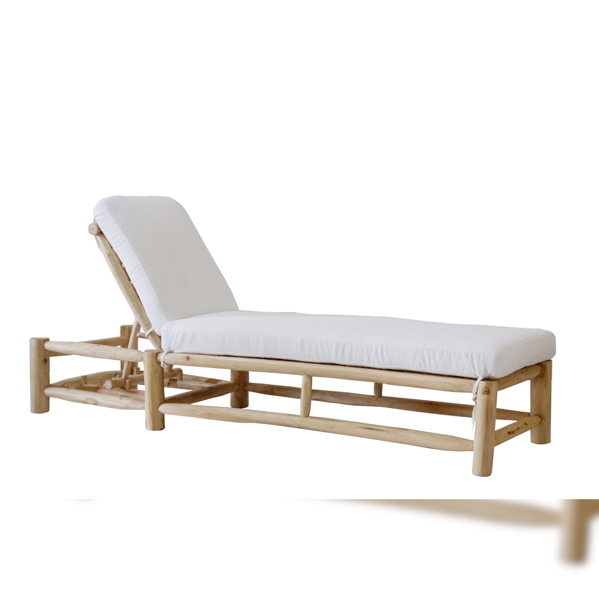 Möbilia Liege | aus Teakholz | inkl. Kissen | verstellbar | natur – weiß | B 200 x T 80 x H 44 cm | 11020030 | Serie GARTEN