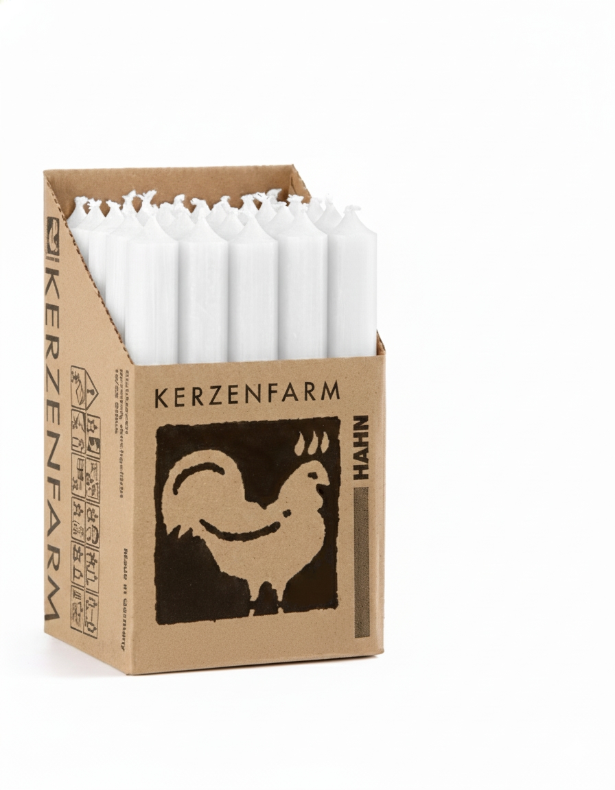Kerzenfarm Hahn Tafelkerzen Weiß 25 Stück - Premium Qualität 18 cm x 2,2 cm - Durchgefärbte Stabkerzen mit RAL Zertifizierung
