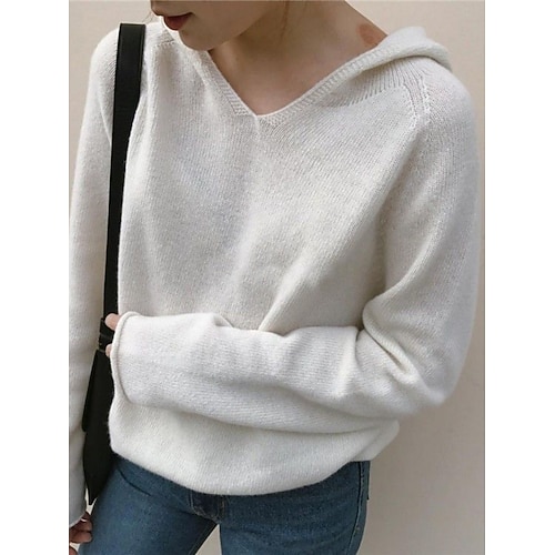 Damen Pullover Brautkleider schlicht Weich Einfarbig Gerippt Mit Kapuze Strick Langarm Normale Oberteile Stricken Outdoor Täglich Wochenende Weiß Gelb Herbst Winter