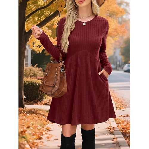 Per donna Abito maglione Elegante Vintage Moda Tinta unica A Coste Girocollo Patchwork Manica Lunga Top lunghi Maglia Scuola All'aperto Casa Nero Rosso Primavera Autunno