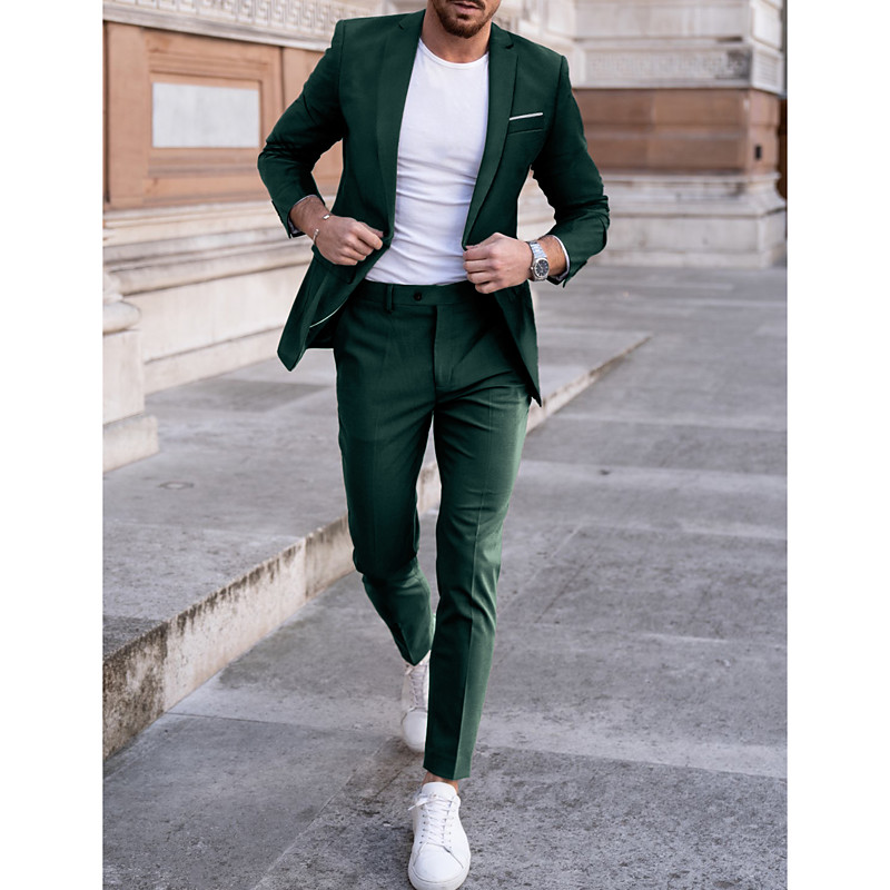 Men's Business Casual Suits Notch Lapel Royal Blue Fashion Daily Solid Colored Standard Fit 2 Piece Single Breasted Two-buttons