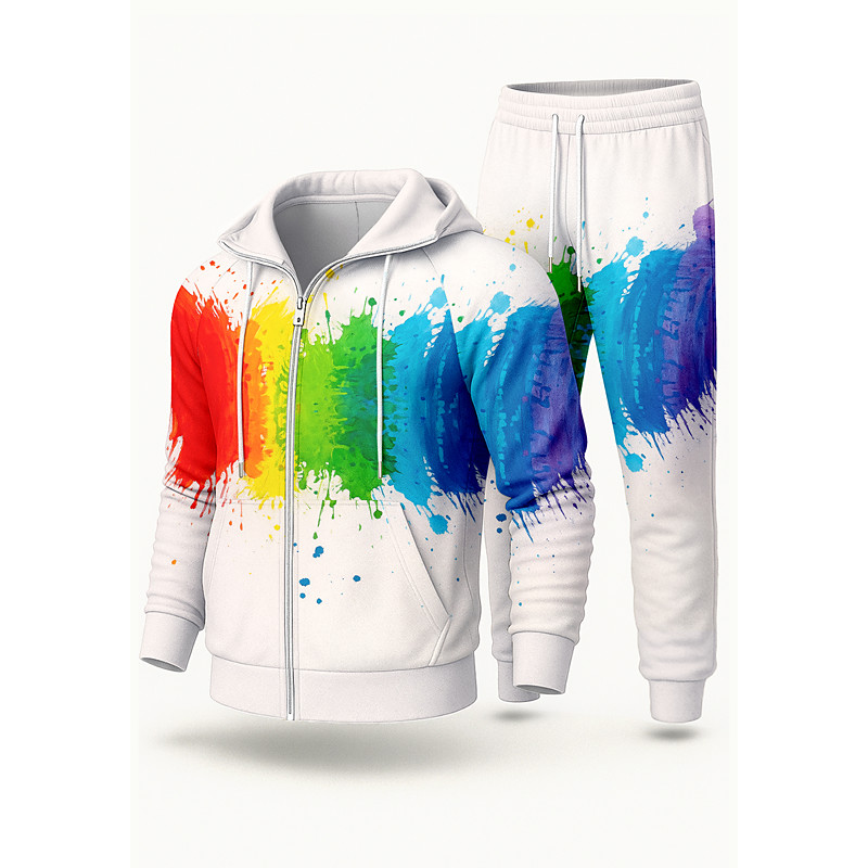 Striped Sweatshirt And Pants Mens Graphic Hoodie Tracksuit Hoodies Set Red Blue Light Gray Crew Neck Color Block 2 Piece Print Sports Outdoor Casual 3D Streetwear Geometric Modern White Gr
