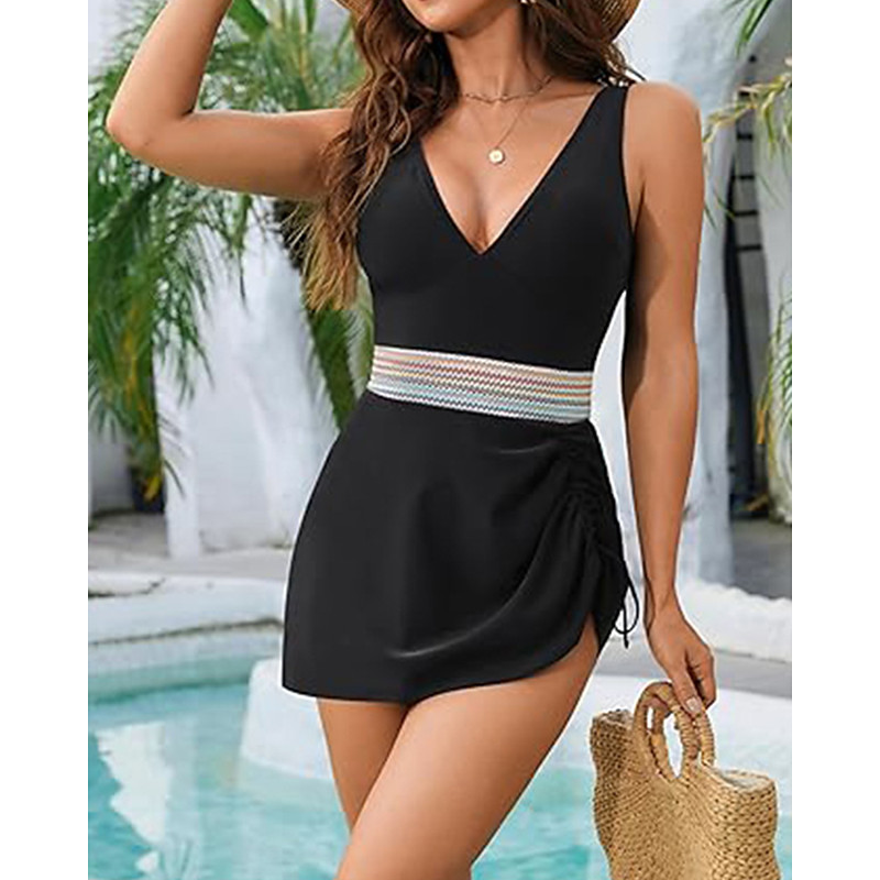 Women's One Piece Swimsuit Slimming Ruched Sexy Cutout Monokini Mesh Tummy Control High Waist Slim Backless Vacation Beach Wear Solid Color V Neck Sleeveless Bathing Suits