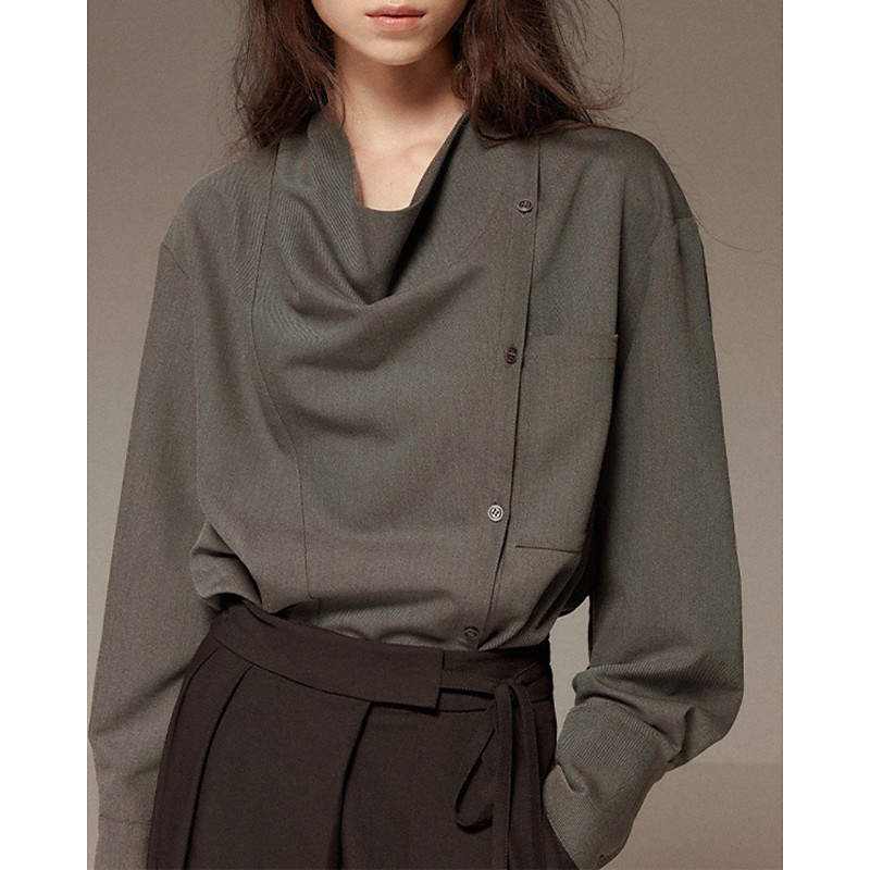 Women's Shirt Blouse Plain Elegant Vintage Long Sleeve Asymmetrical Regular Tops Holiday Going out Buttons White Gray Spring Fall
