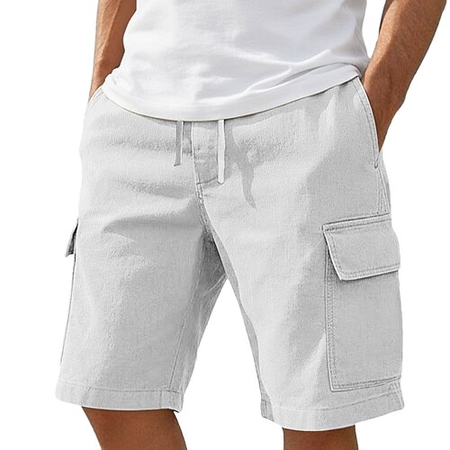 Per uomo Pantaloncini cargo Shorts di Lino Pantaloncini Estivi Shorts da Spiaggia Coulisse Elastico in vita Base Semplice Lunghezza al ginocchio All'aperto Spiaggia Vacanza Hawaiano Blu Nero