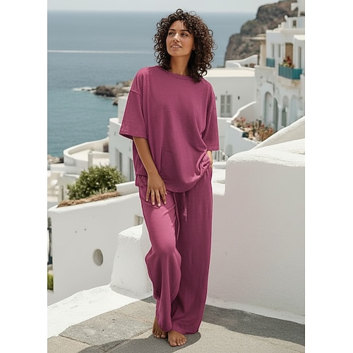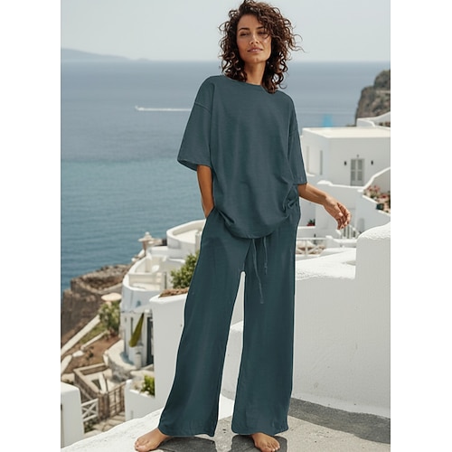 Per donna Abbigliamento da Casa Completi Essenziale Colore Puro Tasca Elastico in vita Maglietta Pantalone Quotidiano Streetwear Manica Lunga Girocollo Blu Nero Bianco Blu marino Marrone chiaro