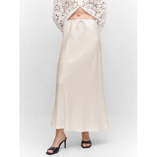 Per donna Gonne in raso Elegante Moda Maxi Vita Alta Gonne Semplice Coulisse Micro-elastico Feste Data Nero Blu marino Marrone chiaro Marrone Estate Raso Poliestere
