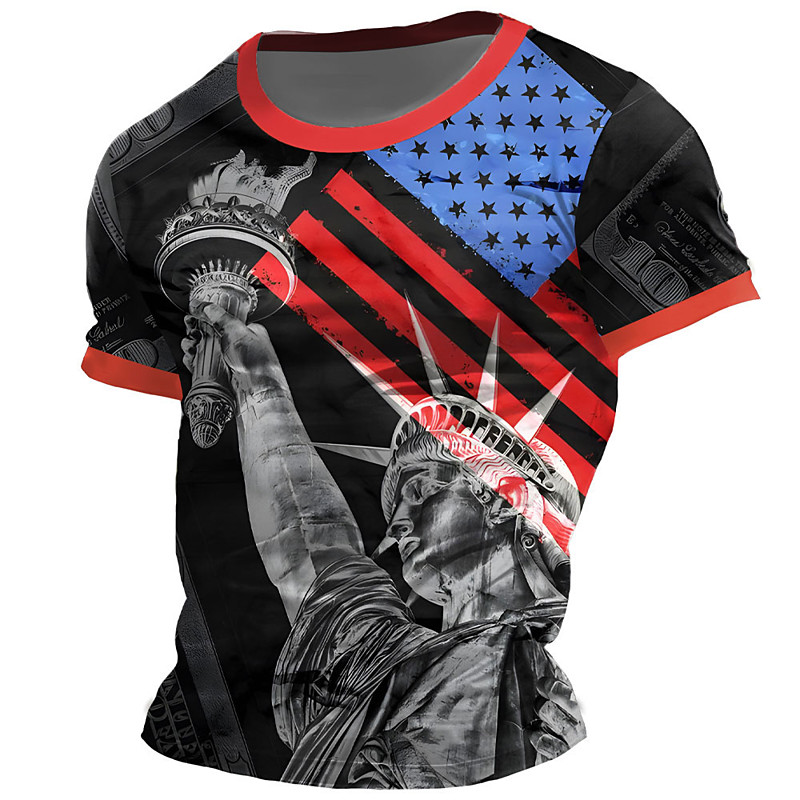 Patriotic T Shirts For Men American US Flag T Shirt Short Sleeve T shirt 3D Print Crew Neck Round Neck Shirt Fashion Daily Basic Street Casual Daily Black Red Blue Summer Spring All Seasons
