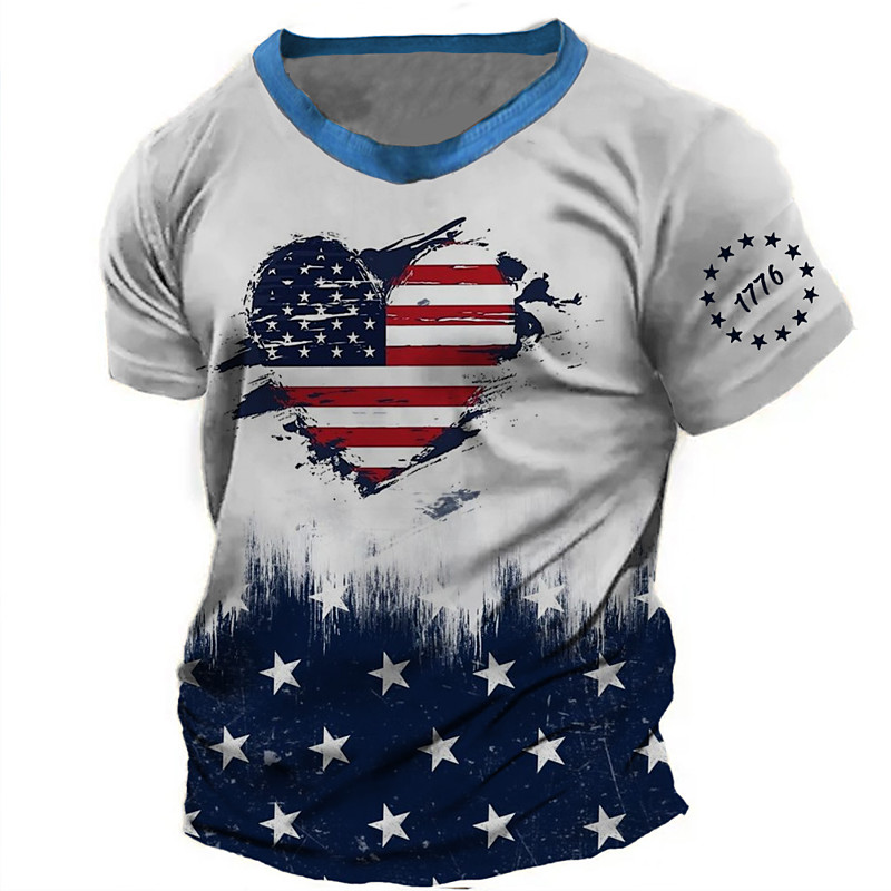 Patriotic T Shirts For Men American US Flag T Shirt Short Sleeve T shirt 3D Print Crew Neck Shirt Fashion Daily Basic Street Casual Daily Black White Blue Summer Spring All Seasons Clothing