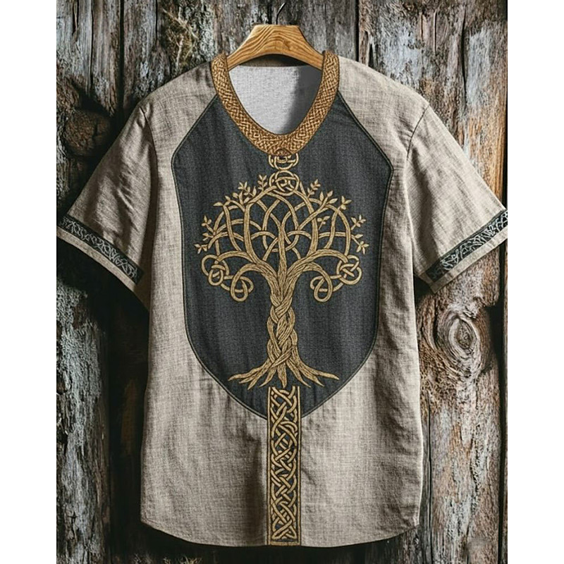 Men's T Shirt Tee Graphic Tee Short Sleeve Shirt Short Sleeve V Neck Summer Tribal Tree Of Life Yggdrasil Vintage Designer Basic Print Vacation Street Going out Blue Khaki Top Tee for Men