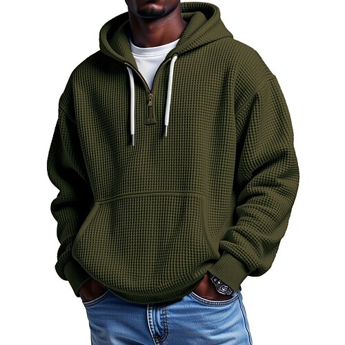 Per uomo Felpa con cappuccio Maglione Felpa con cappuccio e zip corta Nero Rosa Verde militare Blu Reale Cachi Con Cappuccio Semplice Tasca Zip a un quarto Sport Outdoor Casuale Quotidiano
