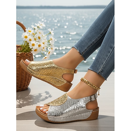sandali con zeppa bicolore rossi da donna scarpe comode con supporto plantare per passeggiate informali, da indossare tutto il giorno e per le vacanze estive