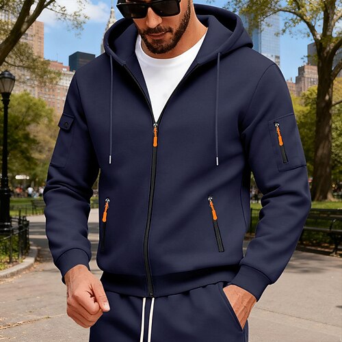 Per uomo Felpa con cappuccio Felpa con cappuccio a zip intera Felpa con cappuccio e zip Nero Blu marino Cammello Grigio chiaro Grigio scuro Con Cappuccio Semplice Con zip Tasca Sport Outdoor