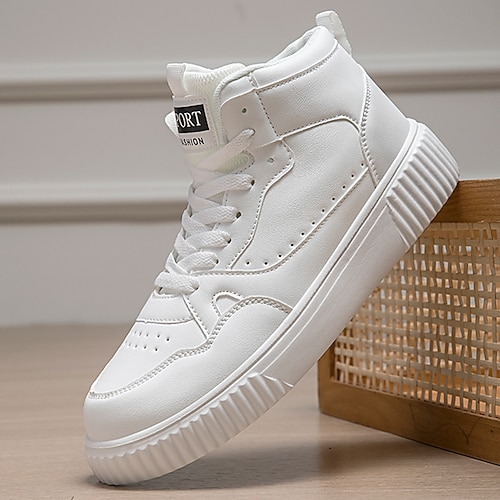sneakers alte da uomo bianche e nere, comode in similpelle, stile casual, streetwear, adatte per l'uso quotidiano