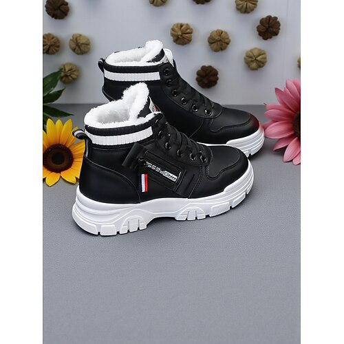 sneakers alte bianche calde da donna con fodera in pelliccia sintetica - scarpe invernali alla moda con suola spessa per un abbigliamento casual all'aperto