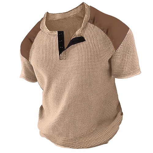 Per uomo Camicia Henley Waffle T-shirt Tinta unica Henley Esterno Informale Manica corta Pulsante Abbigliamento Di tendenza Originale Comodo