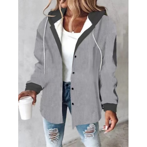 Per donna Giacca Casual Giacca con Cappuccio Confortevole Traspirante Bottoni Casual Tinta unica Vacanza Streetwear Abbigliamento quotidiano Uscire Monopetto Regolare Con Cappuccio Vestibilit