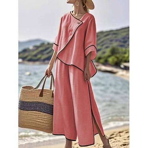 Per donna Moda Streetwear Quotidiano Set di Pantaloni Manica 3/4 Girocollo Tinta unica Patchwork Casuale Quotidiano Blu Rosa Rosso Estate Vestibilità comoda