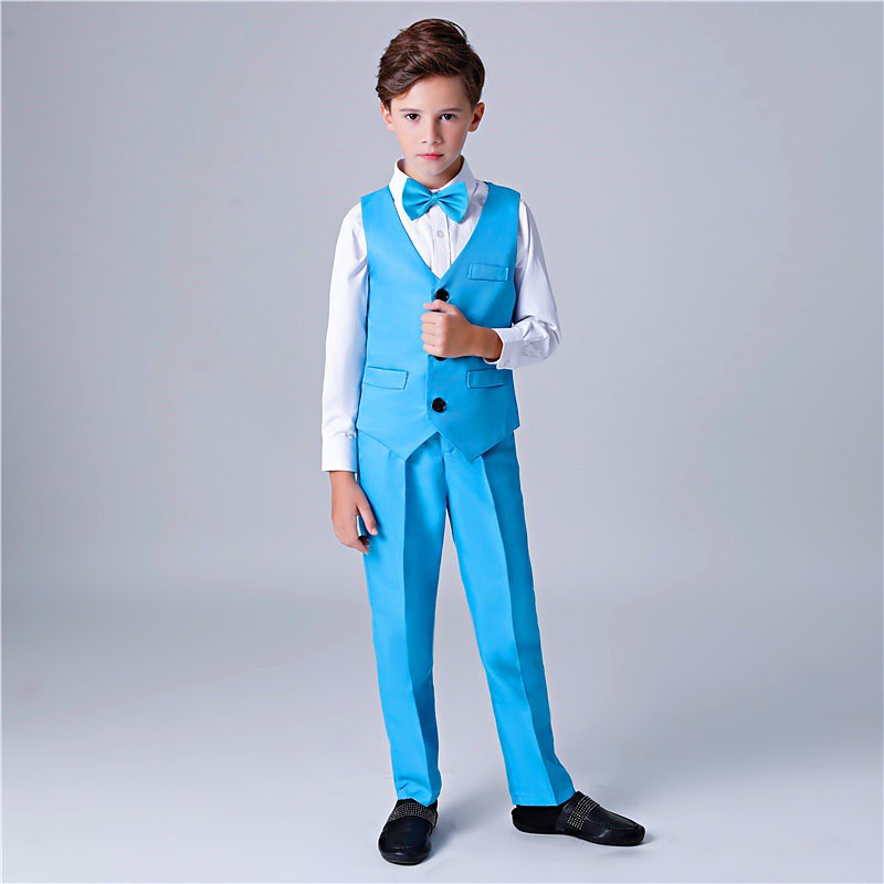4 Pieces Ring Bearer Suit Boys' Kids Suit Vest Shirt Pants Boy's Formal Suit Casual Outdoor Party Fashion Cool Basic Solid Color Blue Black White Nylon
