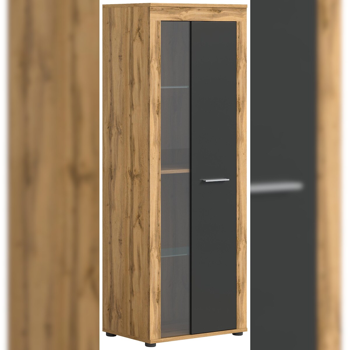 Vitrine HOME AFFAIRE "Cornwall, Hochschrank im Landhausstil, Glasvitrine, Eiche Dekor", braun (eiche), B:147cm H:214cm T:42cm, Holzwerkstoff, Schränke, Vitrine, Metallgriffe, 147 cm breit, viel Stauraum, in zwei Grössen verfügbar eiche Eiche, B/H/T: 147cm