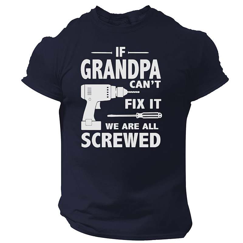 Men's Funny Grandpa Short Sleeve Graphic T-Shirt: 'If Grandpa Can't Fix It We Are All Screwed' Pun Gift