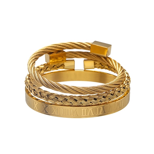set di bracciali in acciaio inossidabile dorato da uomo: bracciali con numeri romani, intrecciati e con filo metallico, eleganti gioielli impilabili per abbigliamento da lavoro, casual e da festa