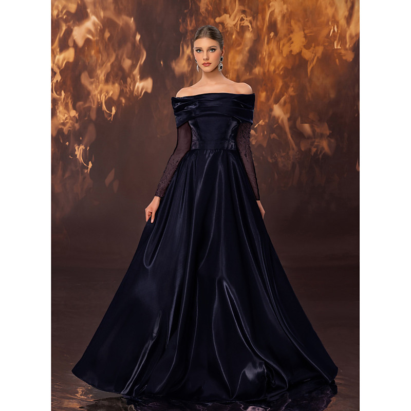 A-Line Floor Length Prom Dresses Evening Gown Ball Gown Formal Dress Elegant Celebrity Style Sleeveless Off Shoulder Garden Party Wedding Stretch Satin with Pleats Beading