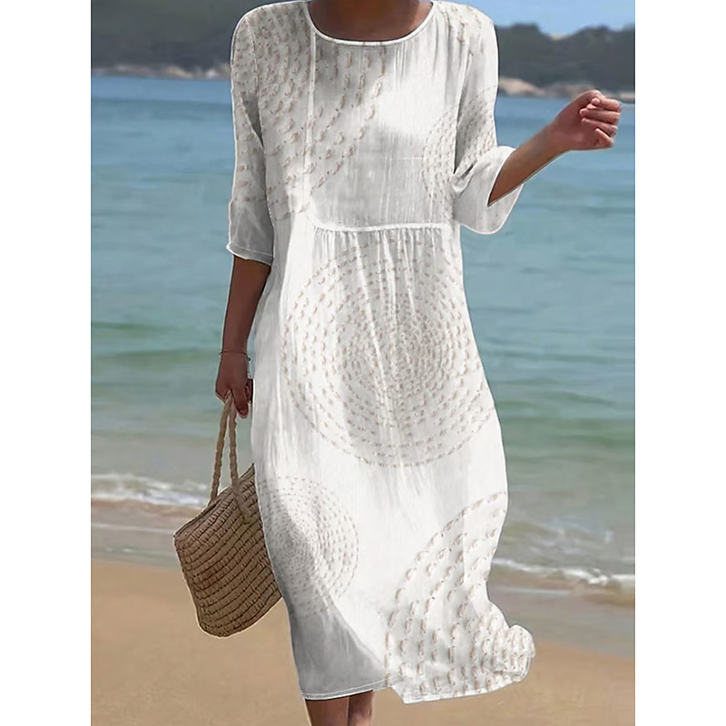 Women's Maxi Dress Kaftan 3/4 Length Sleeve Crew Neck Casual Dress A Line Dress Boho Regular Fit Graphic Abstract White Blue Green Khaki Spring Fall