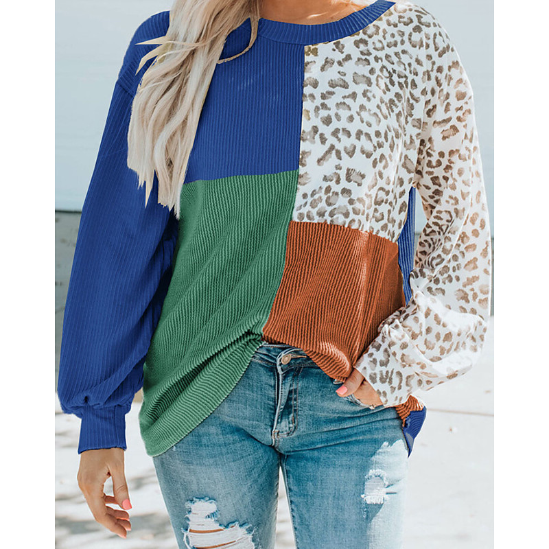 Women's Blouse Leopard Color Block Vintage Stylish Long Sleeve Crew Neck Regular Tops Daily Holiday Going out Patchwork Blue Khaki Apricot Rose Pink Fall Winter