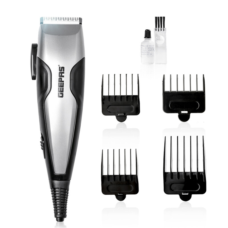 Geepas Hair Clippers, Corded AC Mains Power, High Precision Ceramic Blades, 4 Guide Combs, Black