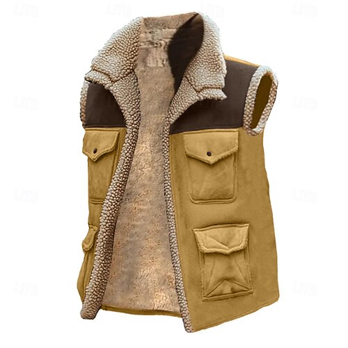 Per uomo Gilet in finta pelle scamosciata Gilet in pile All'aperto Casuale Quotidiano Moda Retrò Autunno Inverno Tasca Poliestere Calore Termico Confortevole Blocco di colori Cerniera Bavero
